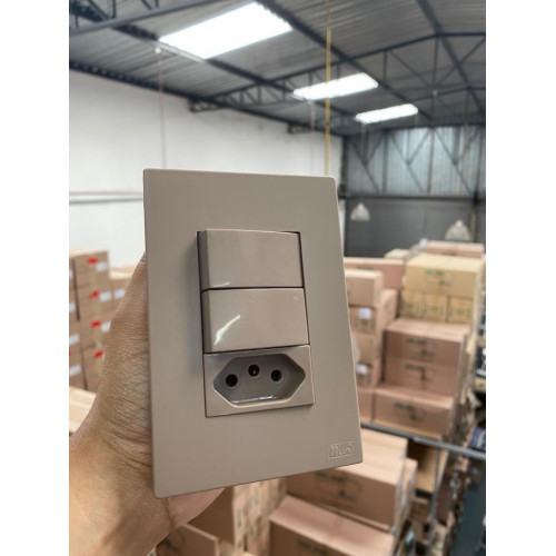 1- CJ INTERRUPTOR DUPLO PARALELO + TOMADA 20A 4X2 - RECTA FENDI SATIN FOSCO - BRS12274-2FE