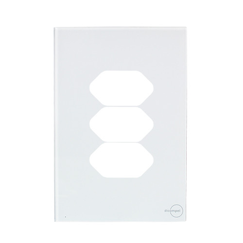 1 - PLACA P/ 3 TOMADAS COM SUPORTE 4X2 - DICOMPEL NOVARA GLASS BRANCO - DNGB-40000/18