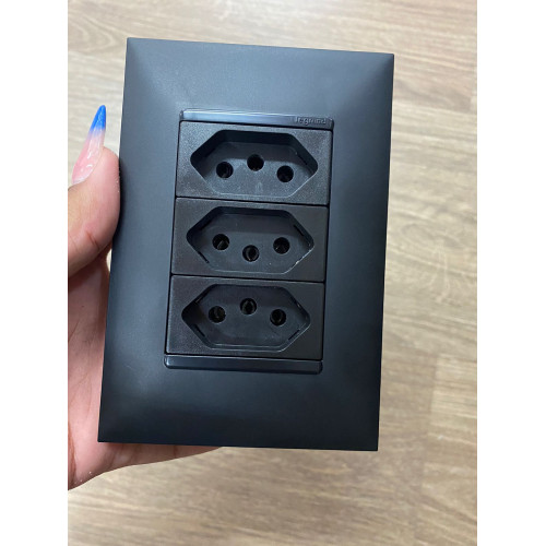 1.CJ TOMADA TRIPLA 10A 4X2 -PIAL PLUS + PRETO - 55844PT