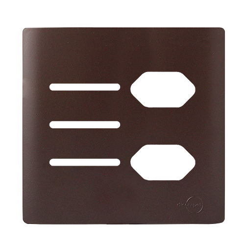 1. PLACA P/ 3 INTERRUPTORES + 2 TOMADAS COM SUPORTE 4X4 - DICOMPEL NOVARA MARROM FOSCO - DNV1500/104MF