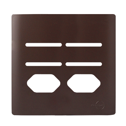 1. PLACA P/ 4 INTERRUPTORES + 2 TOMADAS COM SUPORTE 4X4 - DICOMPEL NOVARA MARROM FOSCO - DNV1500/121MF