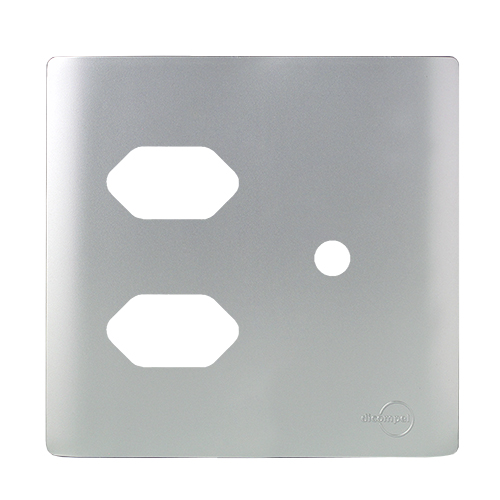 1. PLACA P/ 2 TOMADAS + FURO COM SUPORTE 4X4 - DICOMPEL NOVARA PRATA - DNV1300/122PR